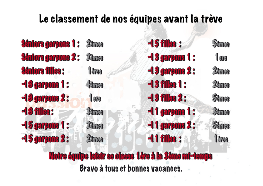 Les résultats du week end :