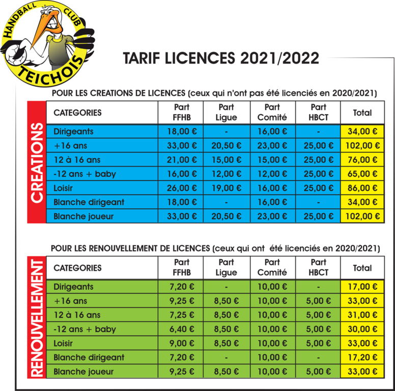 Tarifs Licences saison 2021/2022
